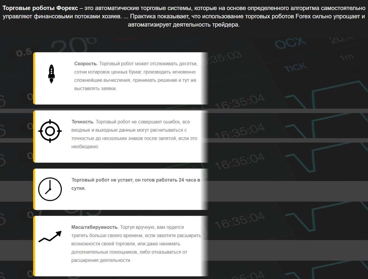 Шулеры Свисс Маркет Индекс выдумали новую фишку по выманиванию денег из карманов трейдеров - торговых роботов форекс, которые на основе определенного алгоритма самостоятельно управляют финансовыми потоками хозяев, а это сильно упрощает и автоматизирует деятельность трейдера. По факту, очередной лохотрон и развод клиентов.