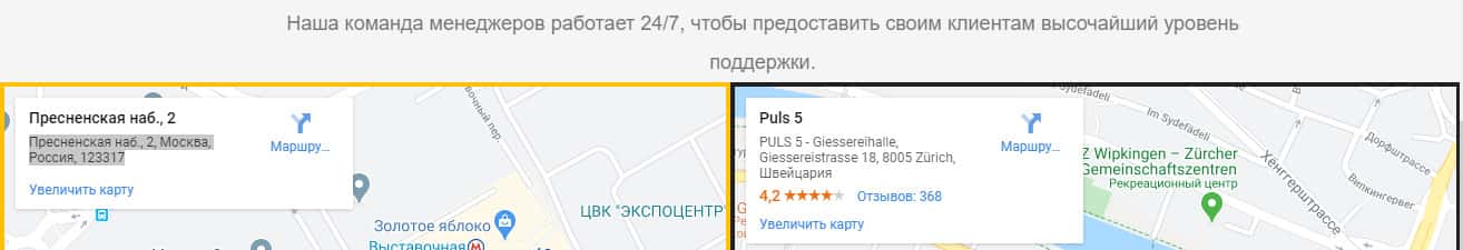 На нижеуказанном скриншоте мошенники из воровской брокерской организации SwissMarketIndex предоставили также два адреса из пяти своих офисов по всему миру: в Швейцарии и России. Но это и вызывает прежде всего веские подозрения по поводу того, что это очередная ловушка со стороны проходимцев, чтобы прикрыть свои аферы: