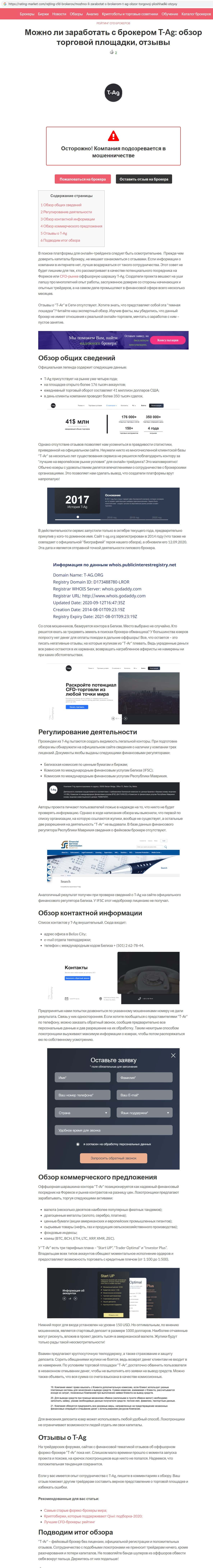 Мнение интернет ресурсов о мошенническом проекте T-AG Org
