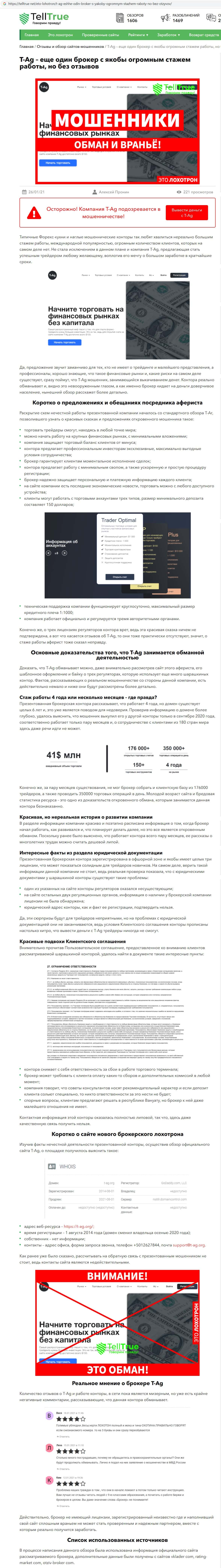 Статью о кидалах Т АГ опубликовал интернет ресурс inforeal ru, в которой рассказал, что все действия компании направленны на выманивание денежных средств своих клиентов.