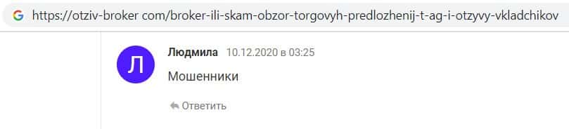 Отзывы интернет пользователей о финансовых жуликах T-AG Org