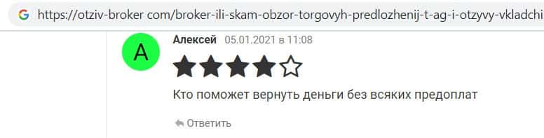 - Псевдоброкер Т АГ разводит наивных пользователей на денежные средства