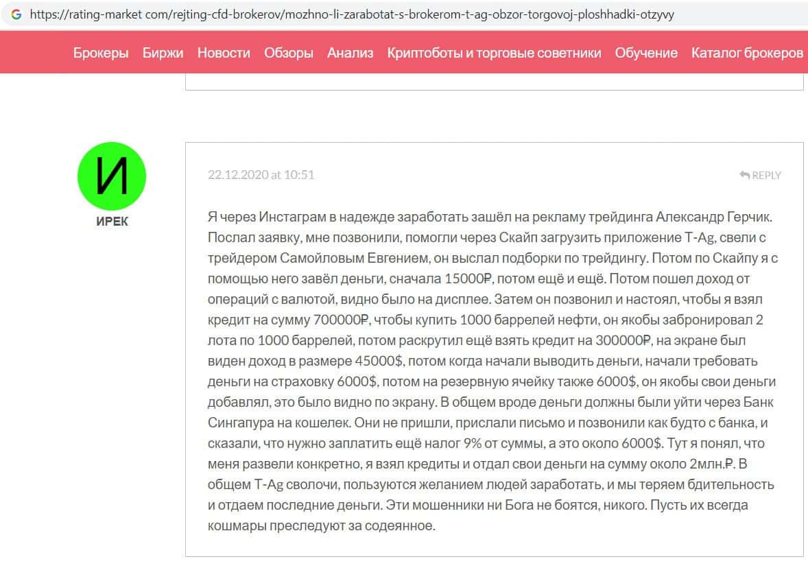 rating-market com - сайт с информацией о разводилах T-AG Org