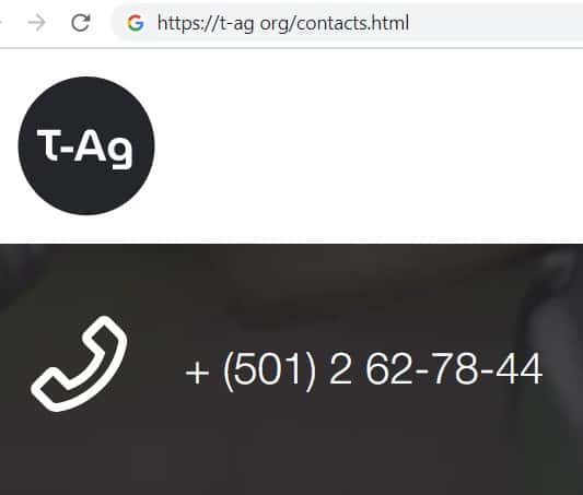 Компания кидал T-AG Org на своём сайте указала контактный номер телефона, с которого заманивает наивных интернет пользователей в финансовую ловушку. Номер мошенников:
