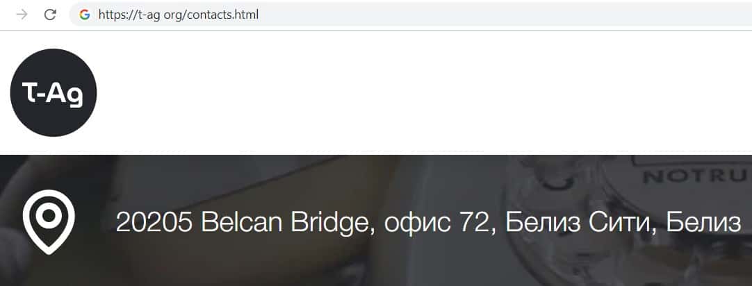 Так же на своём главном интернет ресурсе фирма финансовых кидал T-AG Org указала адрес своей регистрации. Оказалось, что перед нами обыкновенный оффшорный мошенник.