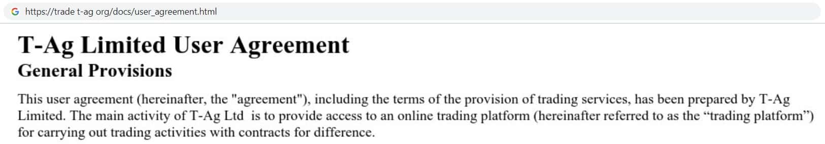 Финансовые мошенники T-AG Org на своём главном интернет ресурсе указали информацию о своём юридическом лице, которым в свою очередь является фирма T-Ag Ltd.