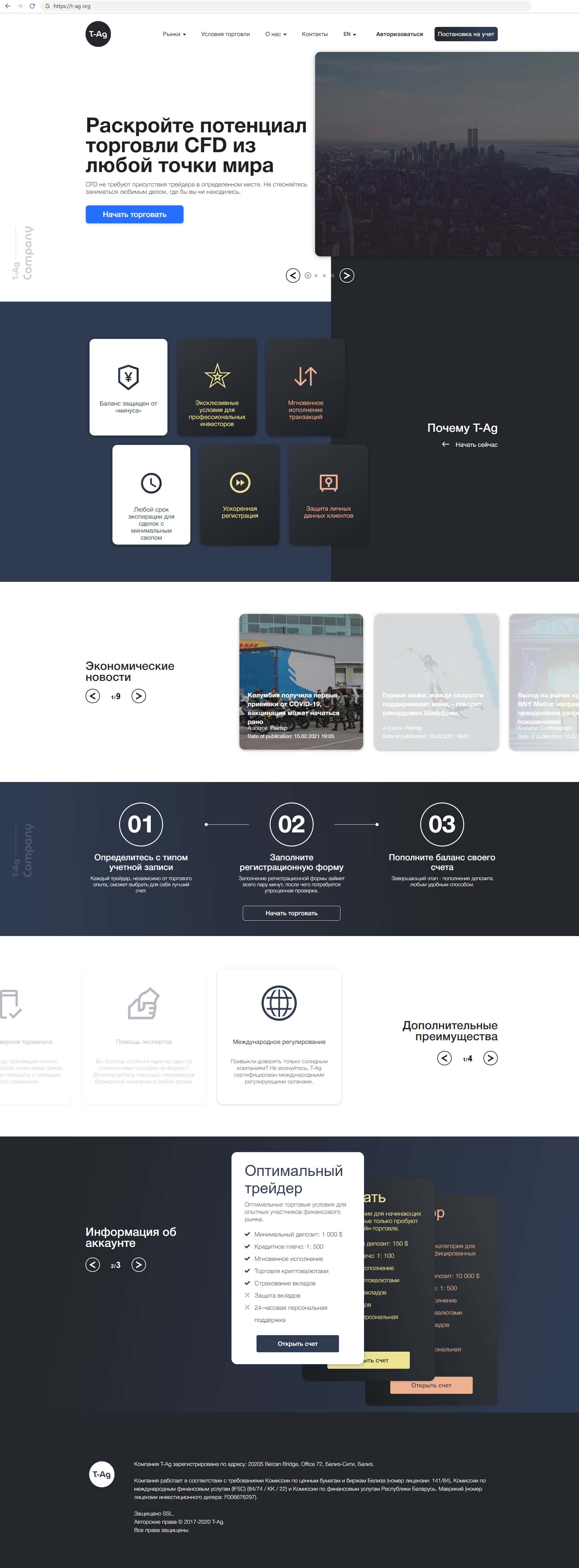 Главный интернет ресурс фальшивого брокера T-AG Org представляет собой обыкновенный коммерческий проект, который создан для привлечения аудитории.