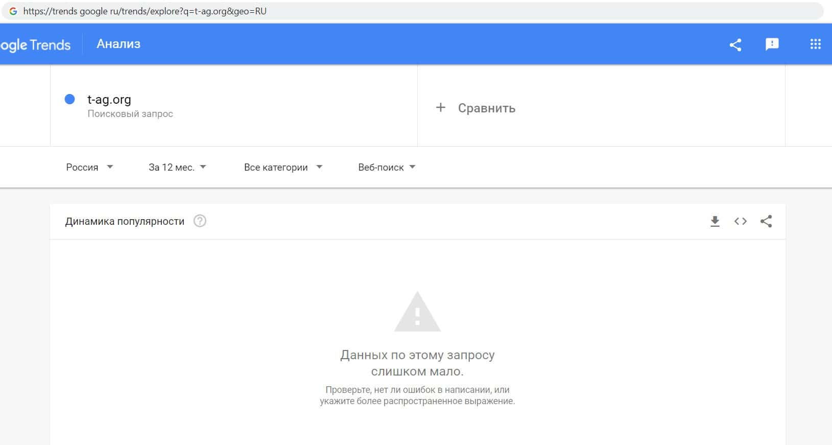 - Количество запросов шарашкиной конторы T-AG Org в Google