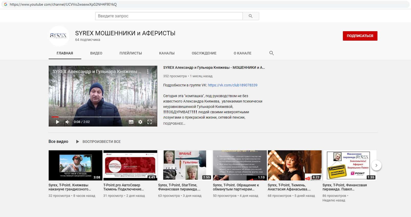 Во всемирной паутине Нами был отыскан youtube-канал, который полностью посвящен разоблачению мошенников, создавших скам-проекты Сайрекс и T-Point Pro. Данные конторы занимаются мошеннической деятельностью, заманивают людей на свой дырявый сайт и обещают невероятную прибыль, которой в действительности не будет !!!