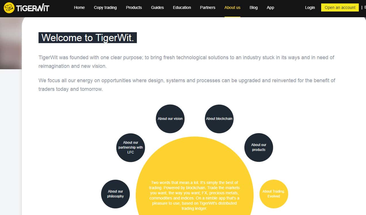 Начинается подвальный сайт у лохотрона Тайгер Вит с довольно стандартной шапки сайта, в которой у жуликов TigerWit имеется довольно типичная мотивация и лапша на уши для наивных пользователей сети интернет, которой шулера Тайгер Вит привлекают клиентов. На изображении, расположенном ниже, вы можете увидеть начало сайта аферистов TigerWit.