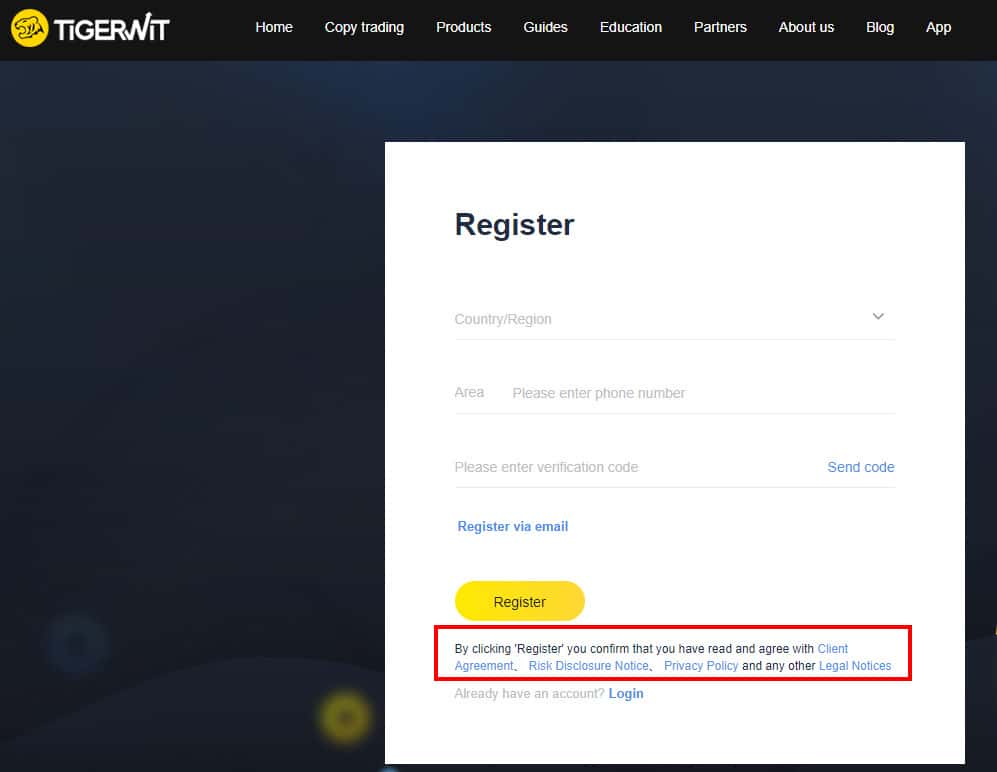 Далее в условиях сотрудничества у аферистов Тайгер Вит следует уже условие о том, что пользователи соглашаются с данным соглашением лохотрона TigerWit фактом регистрации в данной кухни, тем самым давая жуликам Тайгер Вит практически полную свободу действий и контроль. На изображении, расположенном ниже, вы можете наглядно увидеть данный раздел.