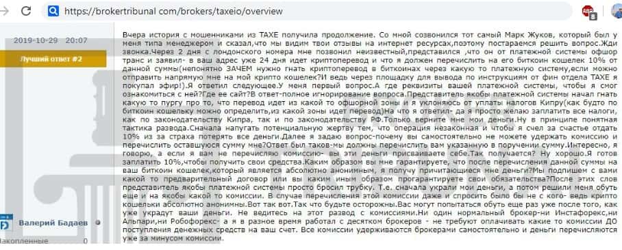- Несчастный трейдер жалуется своим собратьям на компанию Taxe Io на странице интернет-портала boexpert ru