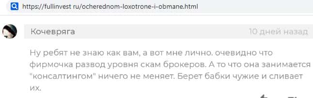 Пользователь на странице веб-ресурса fullinvest ru обвиняет администраторов сайта Такс Ио во лжи