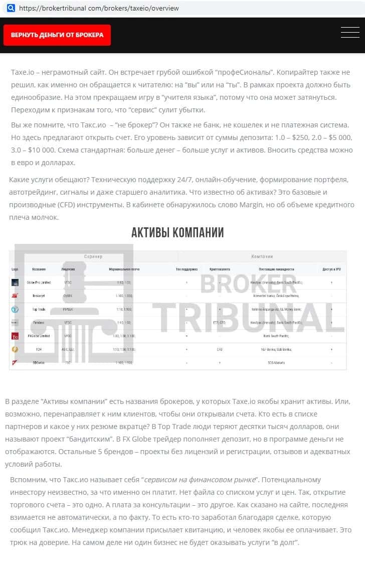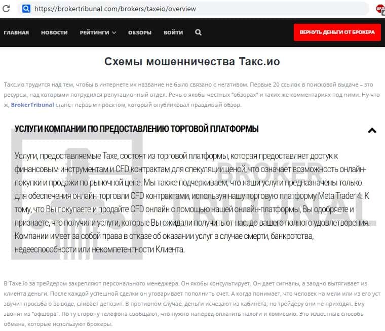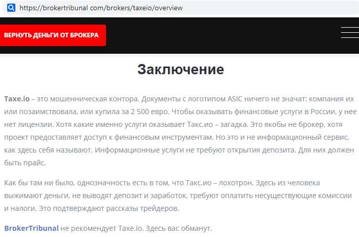 - Эксперты экономического информканала brokertribunal com о торговых условиях на сайте компании Taxe Io