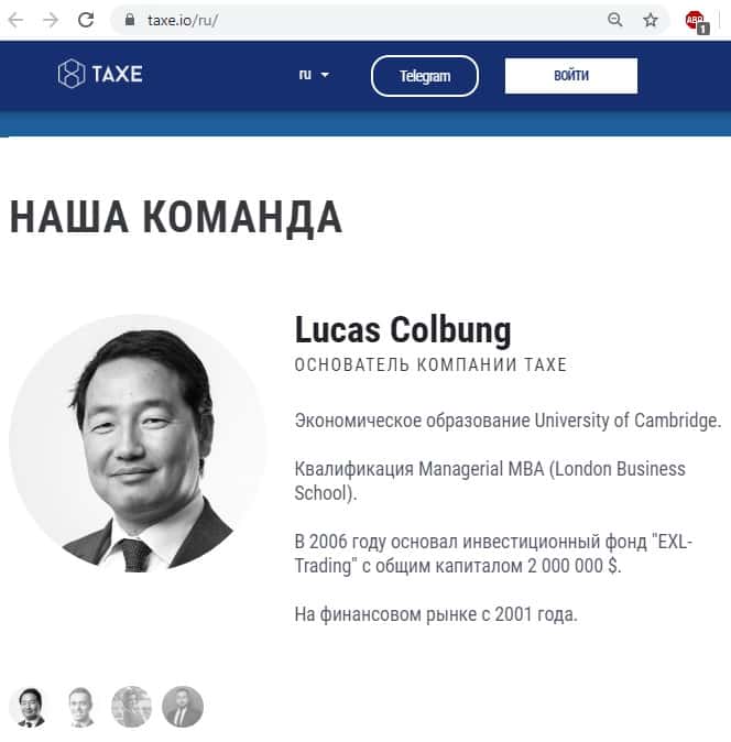 На официальном интернет-ресурсе компании Taxe Io опубликованы персональные данные участников команды руководителей этой конторы. Только, многие информационно-аналитические ресурсы Интернета, очень сомневаются в достоверности этих сведений, и считают, что на сайте показаны фейковые персоны, фото которых взяты из Интернета.