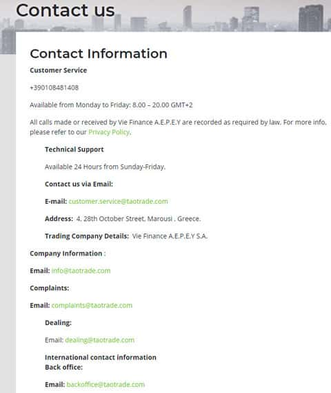 - остальные почты dealing@taotrade com и backoffice@taotrade com и customer.service@taotrade com