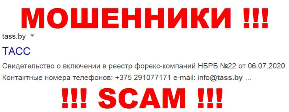 Лицензии и регистрационные документы у разводил TASS By действительно есть, по крайней мере, они очень напоминают реальные. Но это не мешает кидалам обманывать людей.
