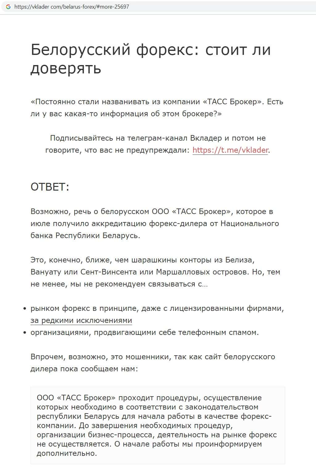 Несмотря на то, что о компании аферистов ТАСС в сети мало информации, мы наткнулись на сайт vklader com, который указал, что данная организация возможно является мошенником.