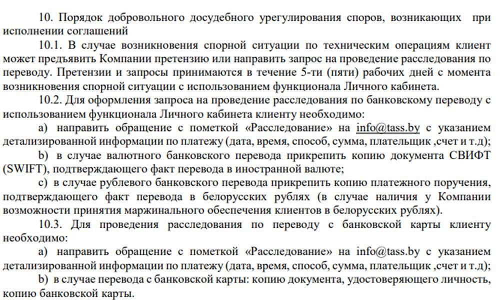 Ниже приведен текст этого мошеннического договора, который ни в коем случае нельзя подписывать, чтобы не оказаться в лапах бессовестных жуликов ТАСС, сливающих депозиты.