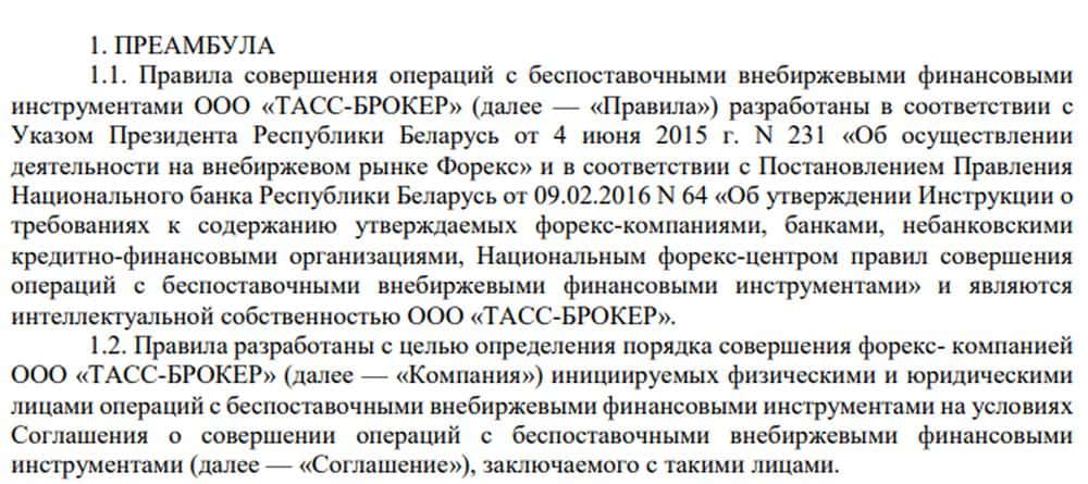 Клиентского соглашения как такового на сайте разводил ТАСС нет - вместо него документы с пафосными заявлениями, где кидалы представляются едва ли ни государственным брокером.