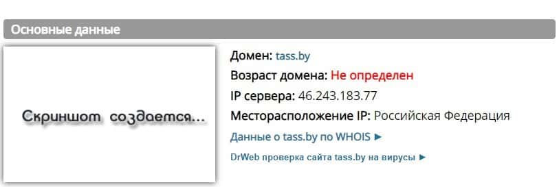 Возраст домена, который прикручен к лохушне ТАСС