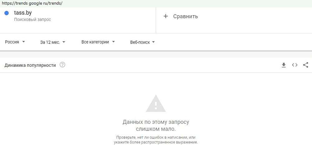 Статистика популярности аферы TASS By в поиске Гугл