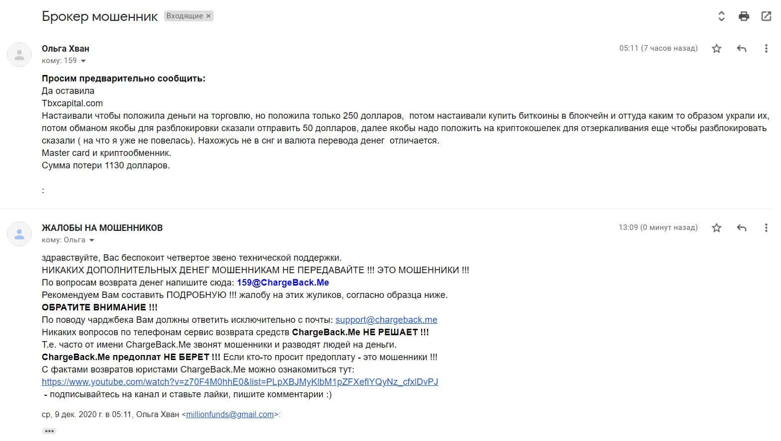 - Мошенники ТБХ Капитал кинули клиента на 9 000 долларов США