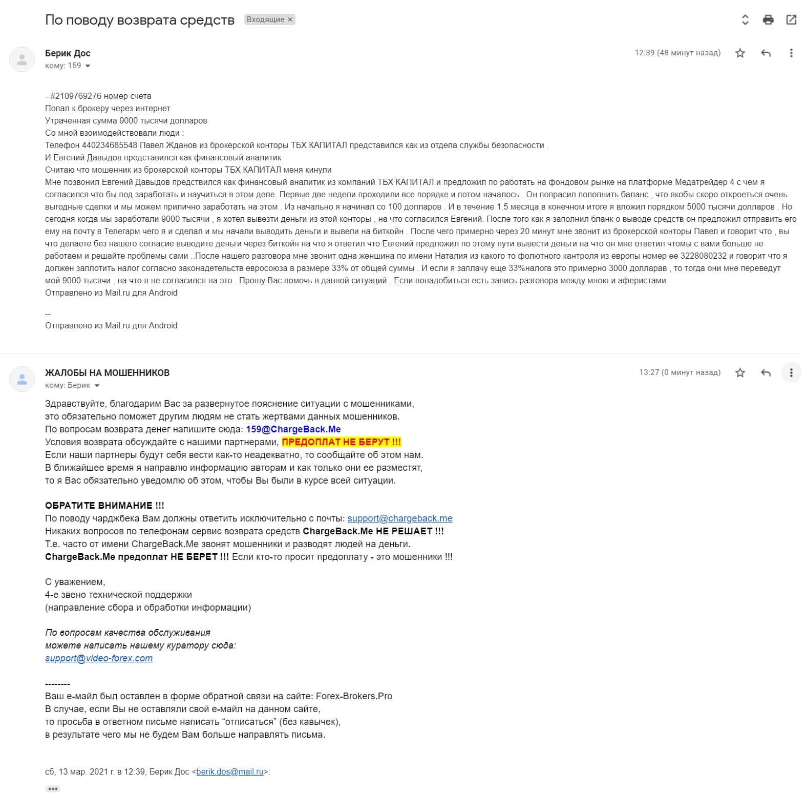 Мошенники ТБХ Капитал кинули клиента на 9 000 долларов США