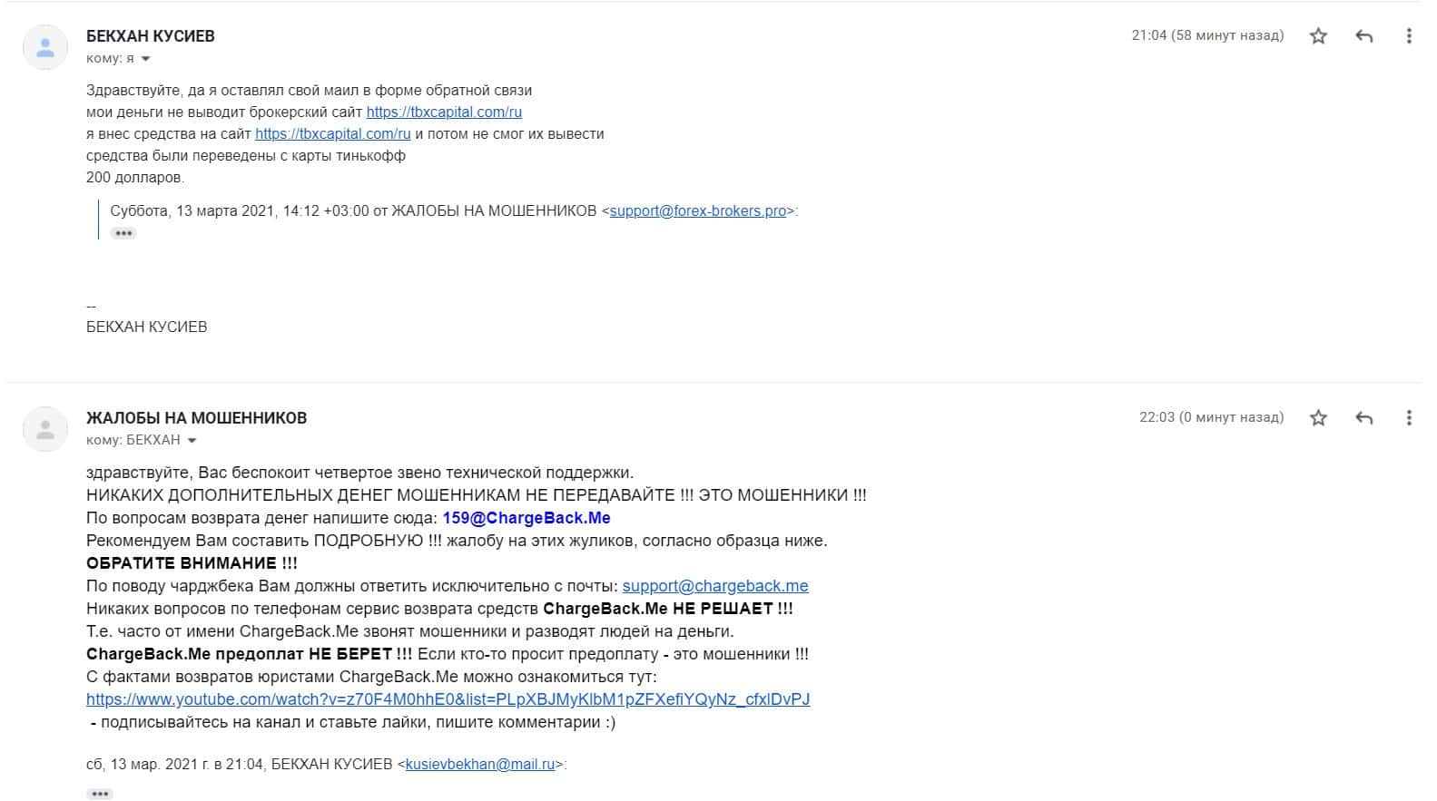 На почтовый адрес сайта по сбору информации о деятельности мошенников Форекс пришла жалоба на обманщиков ТБХ Капитал, которые кинули клиента на 200 долларов США.