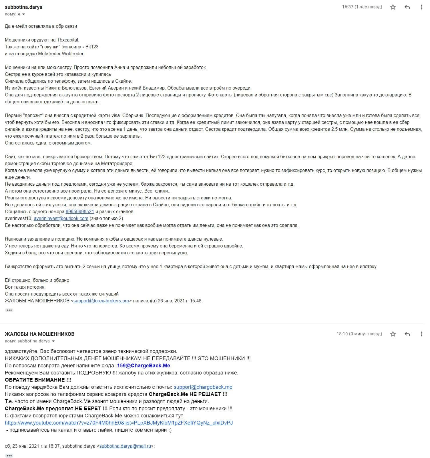 - Жалоба на жульнические конторы TBXCapital и Bit123
