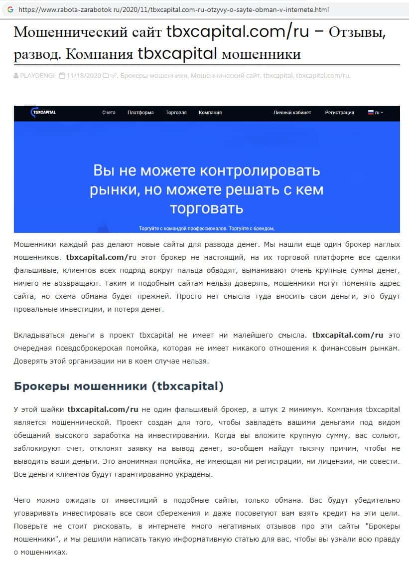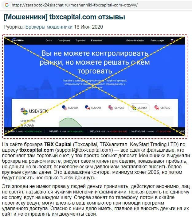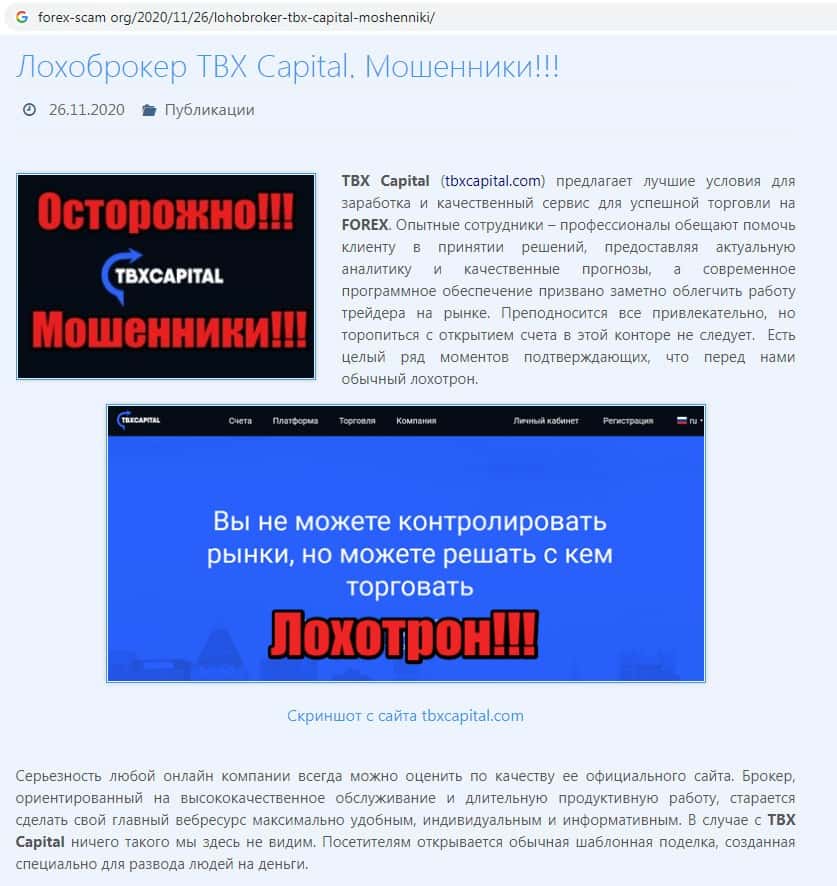 Отзывы о мошенниках TBX Capital, ныне присутствующие в интернет-сети