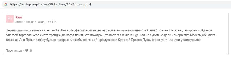 - Отзывы о мошенниках TBX Capital, ныне присутствующие в интернет-сети