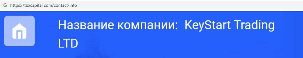 Юридическое лицо KeyStart Trading LTD владеет мошенническим онлайн-сервисом tbxcapital com, компании ТБХ Капитал, у которой оффшорная регуляция.