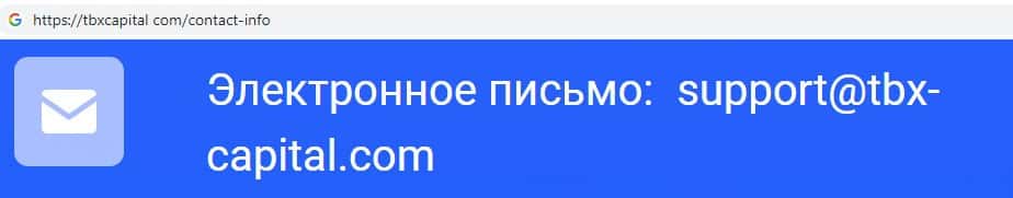 Лохотронщики ТБХ Капитал на своем официальном интернет-ресурсе указывают адрес электронной почты, а именно: