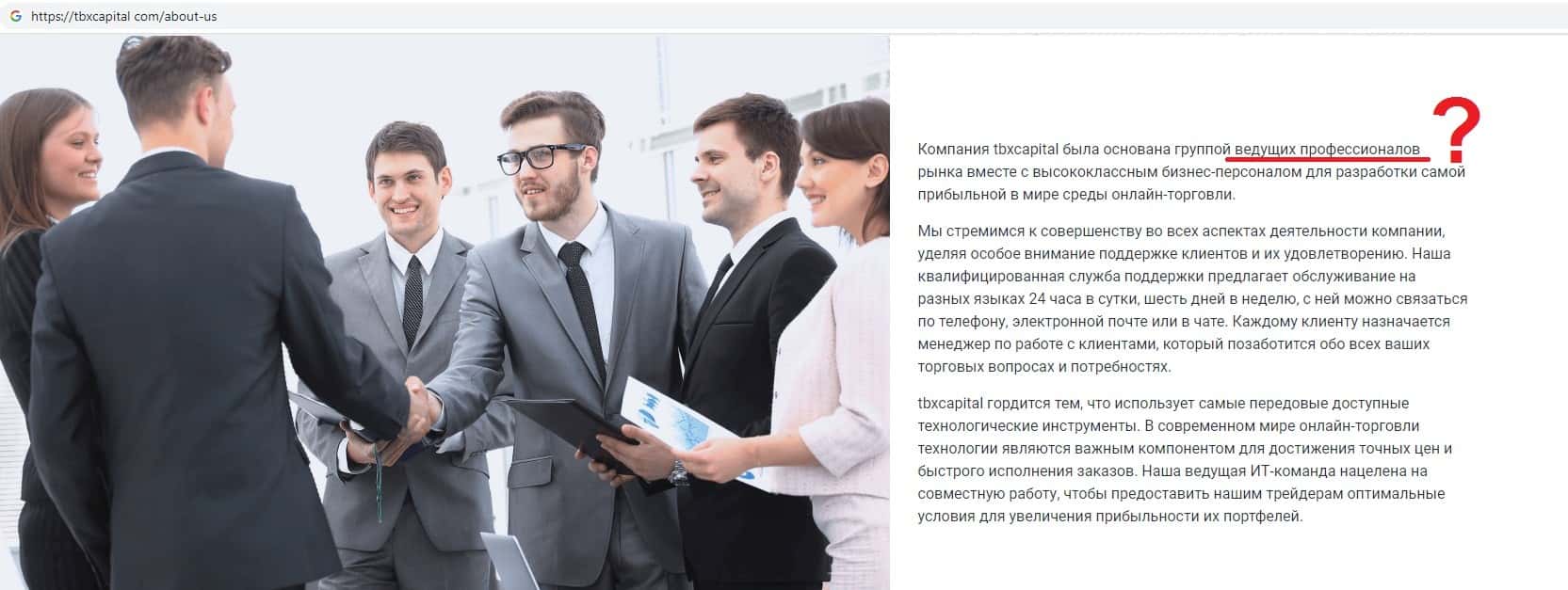 - Обзор главной страницы жульнической организации TBXCapital
