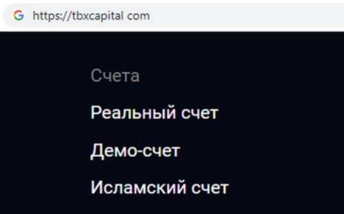 Типы торговых счетов на онлайн-ресурсе скам-компании TBX Capital