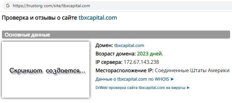 - Информация о возрасте домена скам-компании TBXCapital