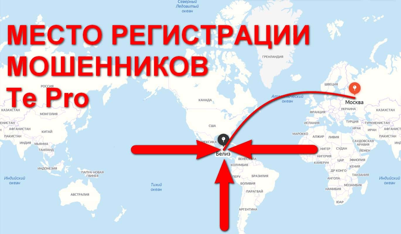 Так же компания жуликов Te Pro указала, что зарегистрирована в Белизе. Мошеннические организации очень часто используют данное место для регистрации своих лохотронов.