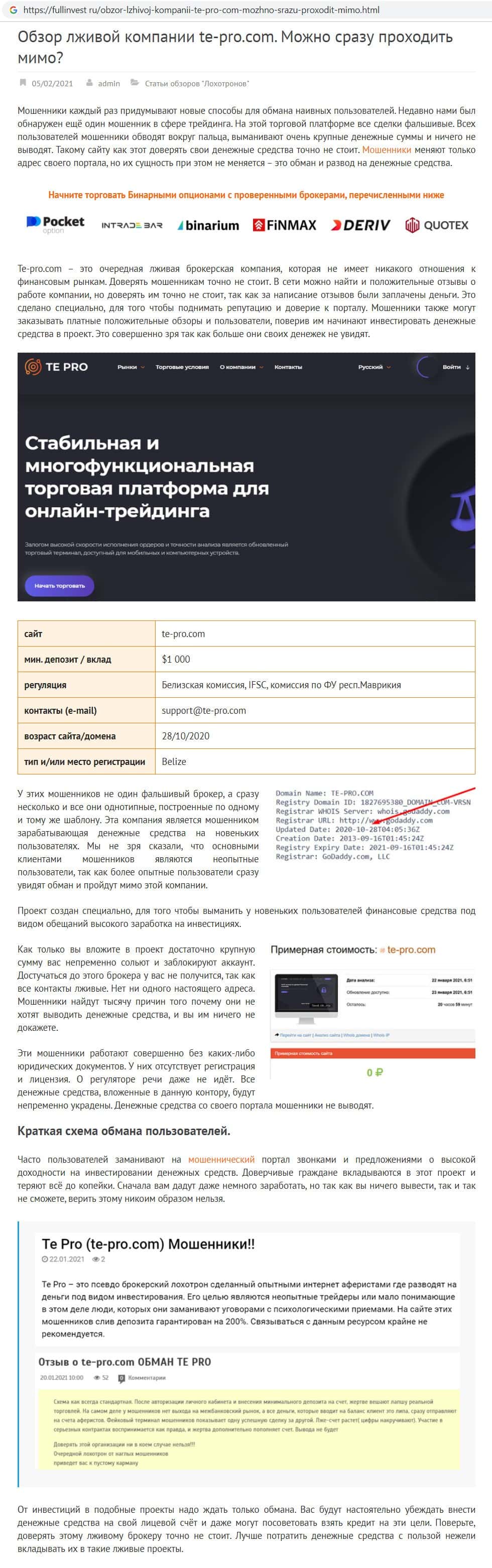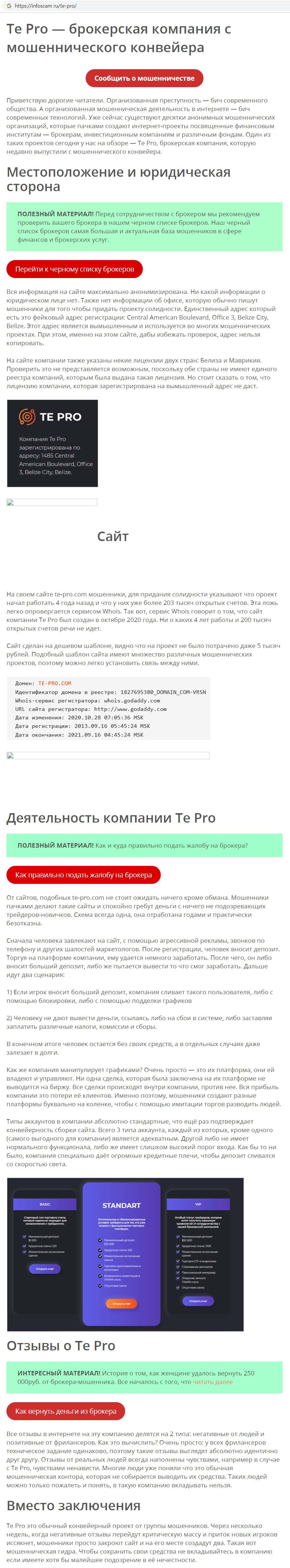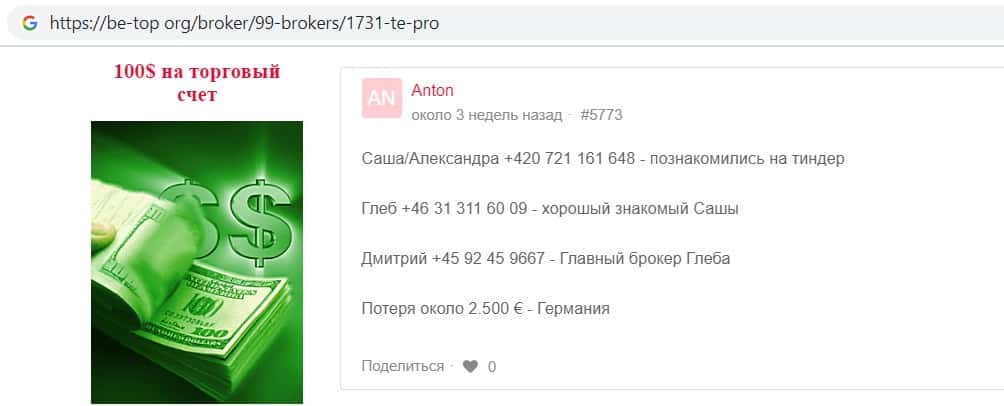 be-top org - информация о разводилах Te Pro