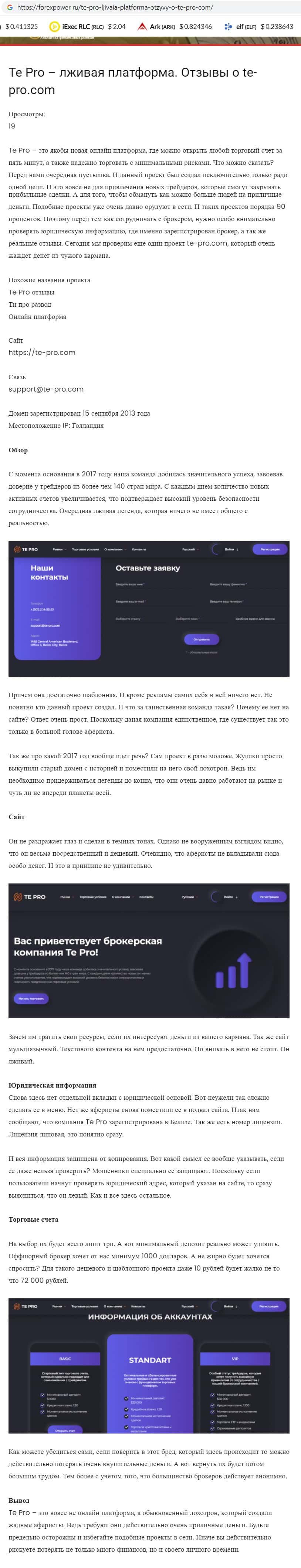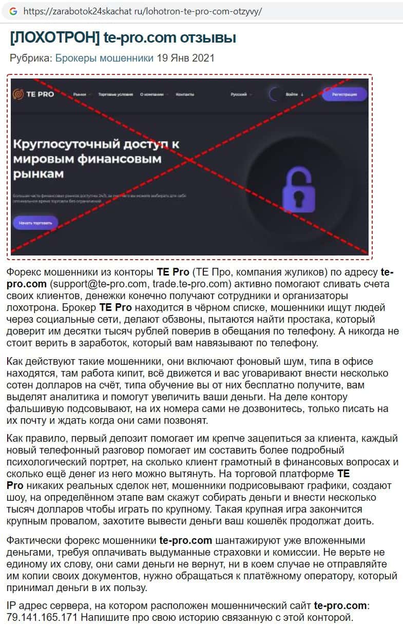 otzyvru ru - информация о лохотроне Te Pro