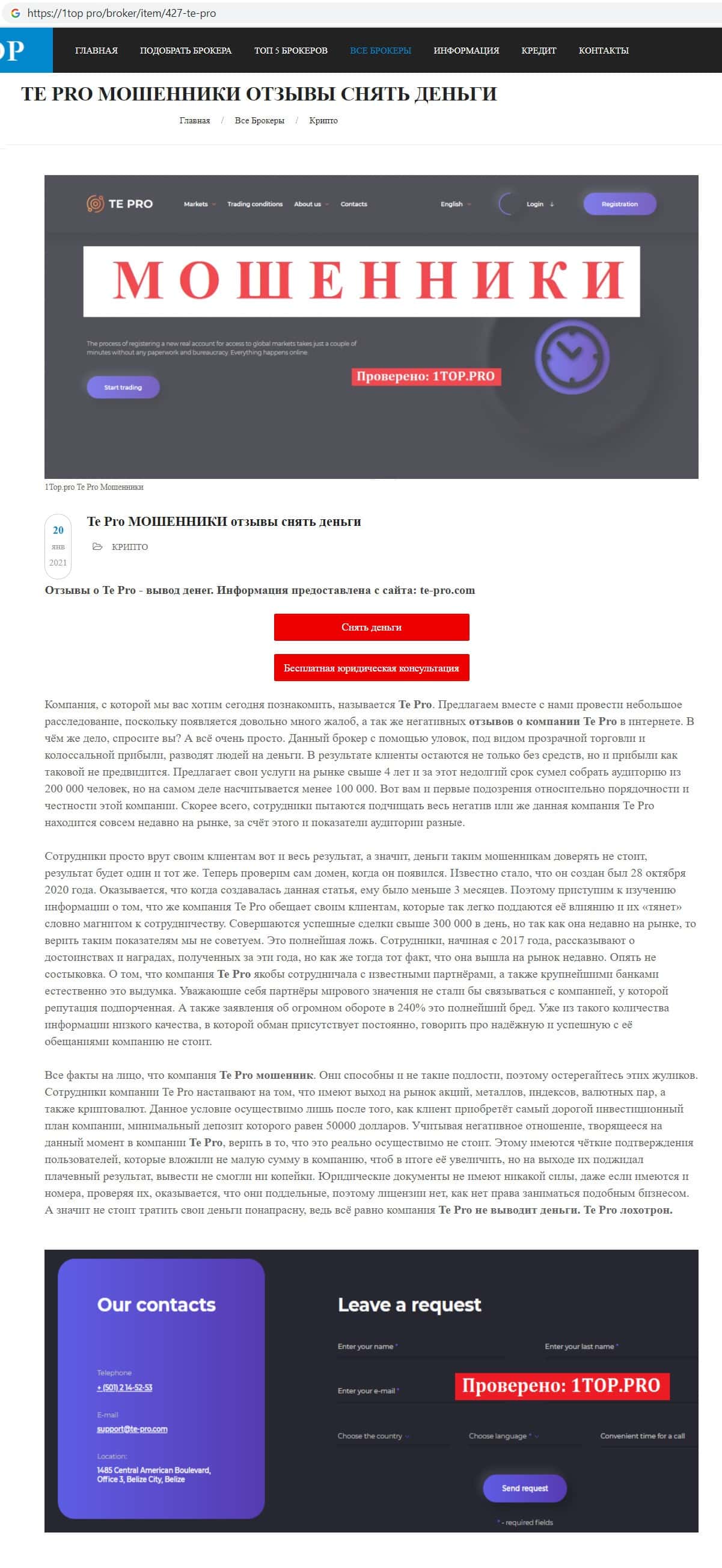 1top pro - сайт с информацией о махинаторах Te Pro