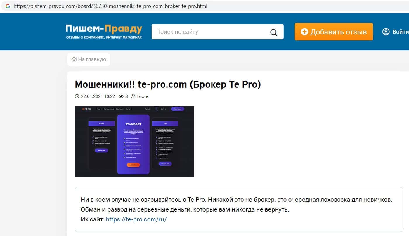 pishem-pravdu com - информация о жуликах Te Pro