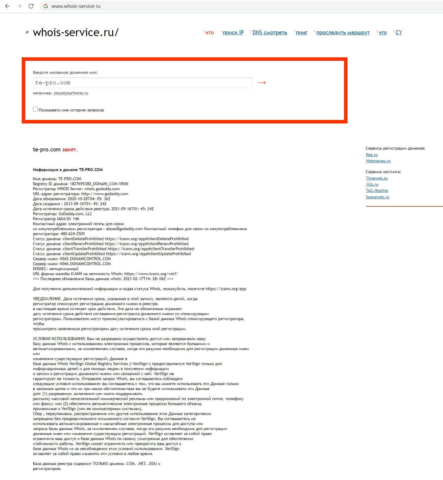 Кому принадлежит доменный адрес фирмы кидал Te Pro?