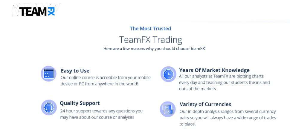 Далее на сайте у мошенников Теам ФХ Трейдинг следует довольно типичный и банальный раздел сайта, в котором шулера TeamFXTrading размещают свои довольно сомнительные преимущества, на основании которых аферисты Теам ФХ Трейдинг пытаются заманить клиентуру. Ниже вы можете увидеть данный раздел сайта.