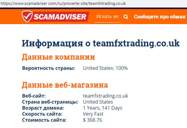 - Обзор на внешний вид подвального сайта мошенников Теам ФХ Трейдинг