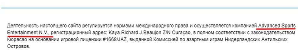 Как указано на сайте, деятельность кидал Текс Спорт Бет якобы регулируется нормами международного права и осуществляется некой конторой Advanced Sports Entertainment N.V.