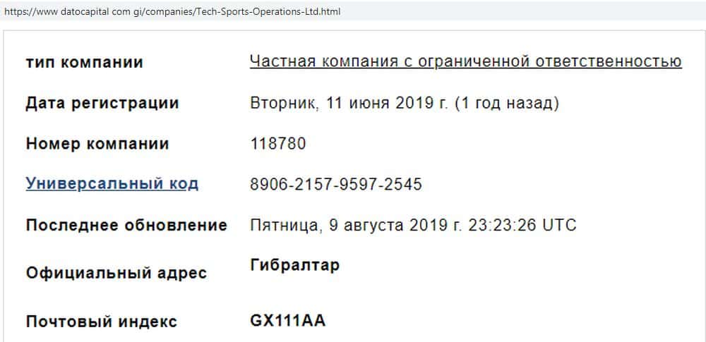 Проблема в том, что данные управляющей компании жулики Текс Спорт Бет могли украсть, ведь сама контора (называется, кстати, Tech Sports Operations), зарегистрирована в Гибралтаре.