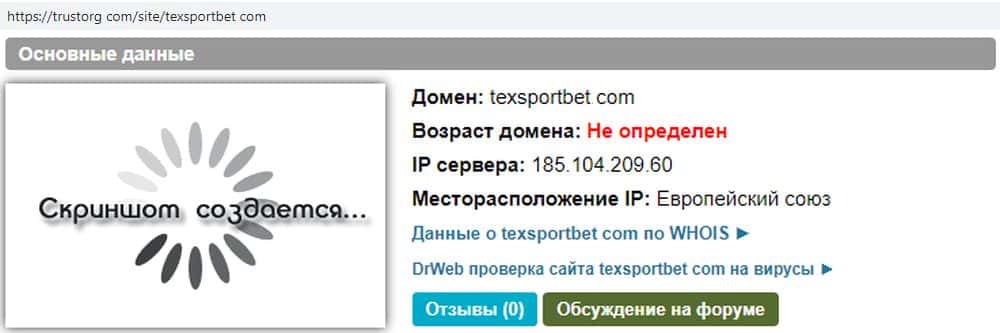 Среди претендентов на принадлежность мошенникам Текс Спорт Бет есть и домены в тематической зоне. Они заняты, но доступа к ним на данный момент нет, возможно, это скам: