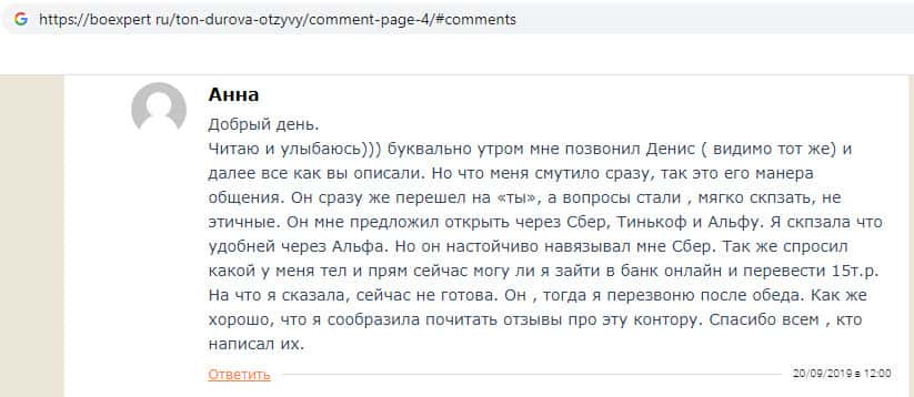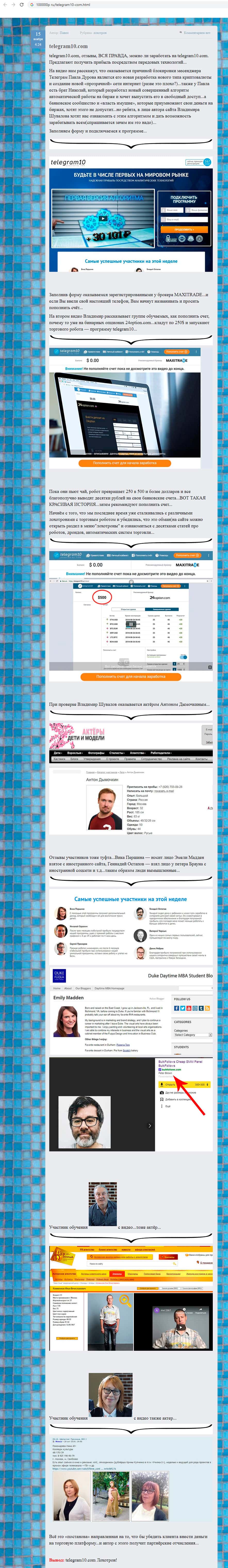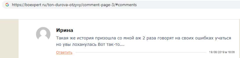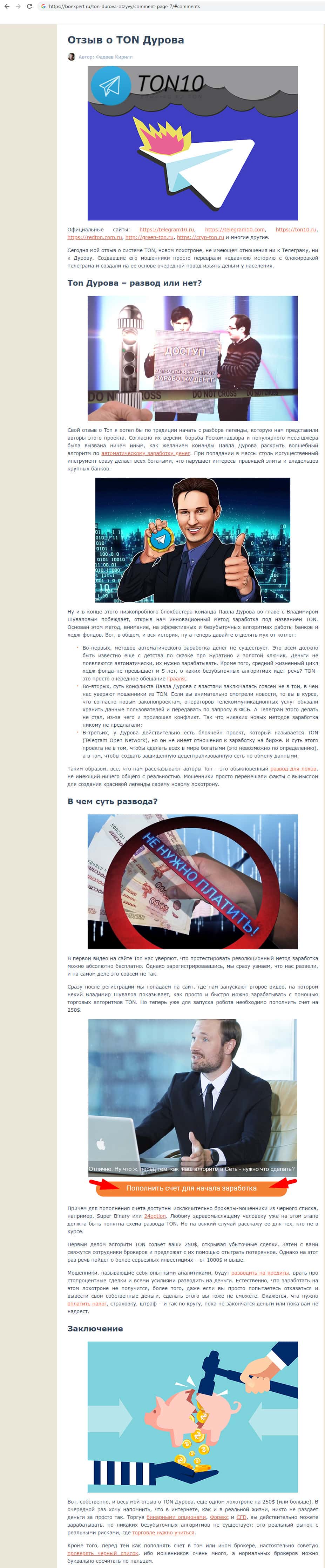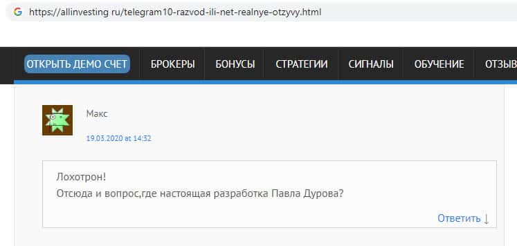 Отзыв пользователя к разоблачительной статье о кидалах Telegram10 Ru
