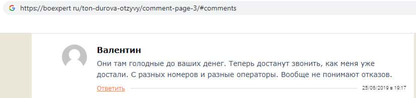 В данном отзыве мы видим, что пользователь сообщил, что компания мошенников Telegram10 Ru голодна к деньгам пользователей. Так же добавил, что после регистрации в проекте компания достанет звонками, как и было с автором отзыва. Ему звонили с разных номеров и операторов, так как они не понимают отказа.